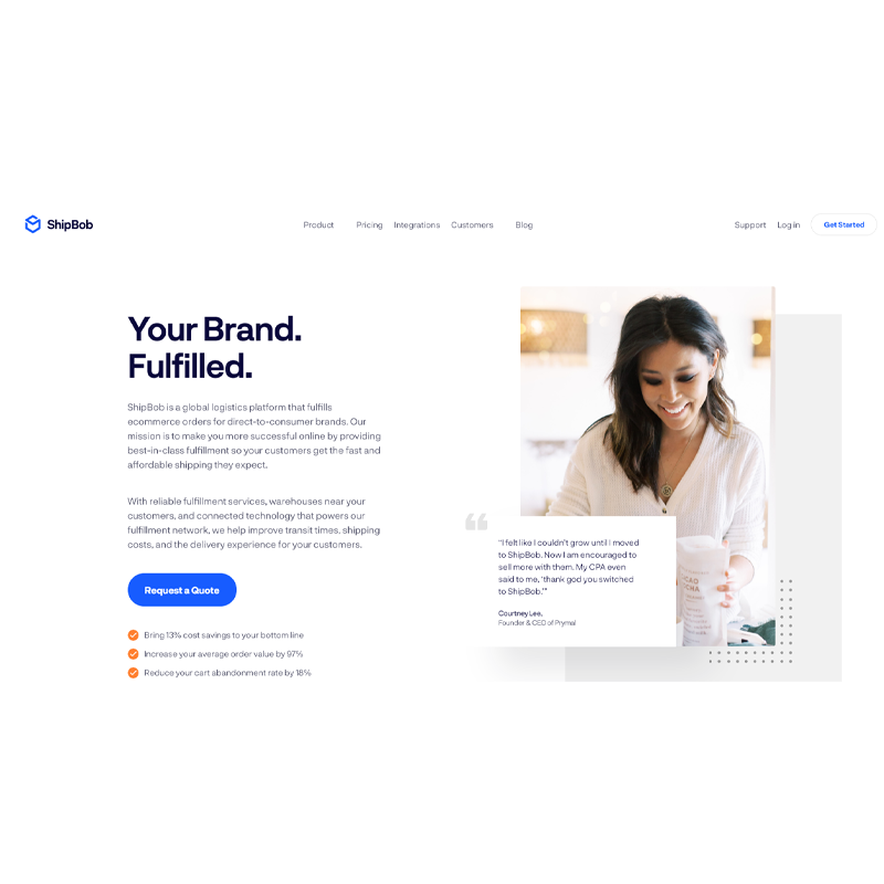 ShipBob securely stores all of your inventory and ships it to clients as soon as an order is placed. ShipBob has a great customer satisfaction rating and a high bar for customer service.